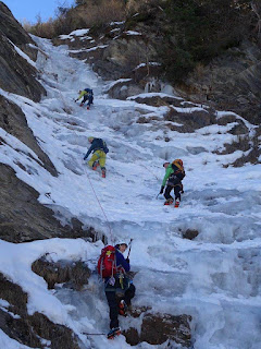 Pour cette semaine d'initiation à la cascade de glace les EPAFIENNES adoptent Pauline et Capucine qui se sont inscrites à la formation en "candidat libre". Plus on est de folles…
